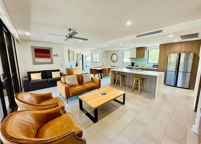 The spacious 160 m² Sea Temple Apartment In Palm Cove is located in Palm Cove, just 600 metres from Palm Cove Tavern, and pampers guests with a hot tub. Pullman Palm Cove Sea Temple Resort and Spa is only a 5-minute walk away, while the Cairns Aquarium is also within a few blocks of the beachfront apartment.